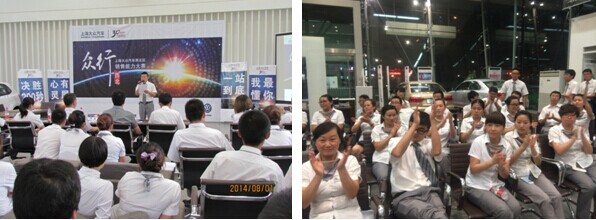 2014年"八一建軍節(jié)",在這個(gè)充滿(mǎn)紀(jì)念意義的日子,青海區(qū)域四家經(jīng)銷(xiāo)商的銷(xiāo)售戰(zhàn)士們-青海物產(chǎn)、賽亞金昊、金島興寶、格爾木都市汽貿(mào)共同會(huì)師青海物產(chǎn)汽貿(mào)公司展廳的比賽戰(zhàn)場(chǎng),兩兩對(duì)抗,為高原銷(xiāo)售精英的首場(chǎng)PK戰(zhàn)斗吹響了號(hào)角。