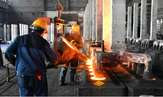 鏡頭一:陽(yáng)極組裝車(chē)間"磷生鐵澆筑"比賽現(xiàn)場(chǎng),參賽選手在指揮員的指令下,天車(chē)工密切配合,將赤紅的磷鐵水均勻澆筑在炭碗內(nèi)側(cè),整個(gè)過(guò)程"有條不紊、一氣呵成"。
