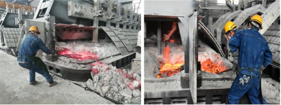 鏡頭三:電解車(chē)間"更換陽(yáng)極作業(yè)"比武現(xiàn)場(chǎng),兩車(chē)間選派了業(yè)務(wù)能力最強(qiáng)人員組成參賽隊(duì)對(duì)抗比拼。面對(duì)電解槽滾滾熱浪,每一名選手都沉著冷靜、從容應(yīng)對(duì);他們密切配合、張弛有度,按照操作規(guī)程有序進(jìn)行……