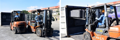 鏡頭五:散貨堆場(chǎng)內(nèi),工藝車(chē)隊(duì)"叉車(chē)卸運(yùn)集裝箱"技術(shù)比武吸引了大量下班途中的職工駐足觀看。選手們以嫻熟的駕駛技術(shù),將集裝箱內(nèi)堆放的炭塊接連不斷地掏出,并運(yùn)送至指定板車(chē)上。大家你追我趕、競(jìng)賽氣氛異常激烈。