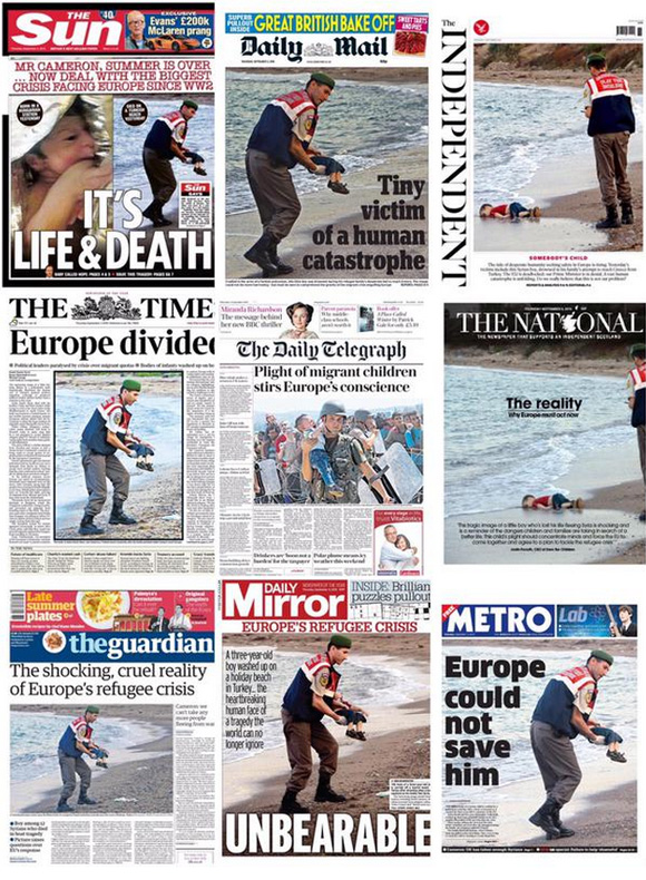 這些照片很快以標(biāo)簽#KiyiyaVuranInsanlik(沖上岸的人) 席卷Twitter,占據(jù)了歐洲各大報(bào)刊頭版。